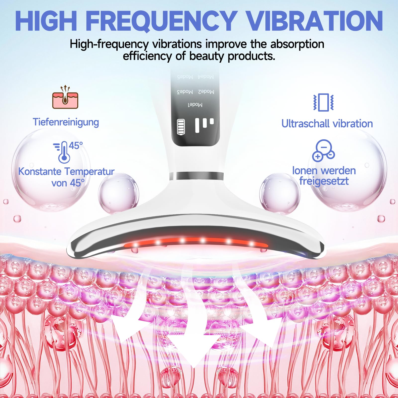 Face Toning Devices with 45±5°C for Electric Facial Device & Neck Massage, 3 Modes 7 Colours Anti-Wrinkle Face Device for Women White