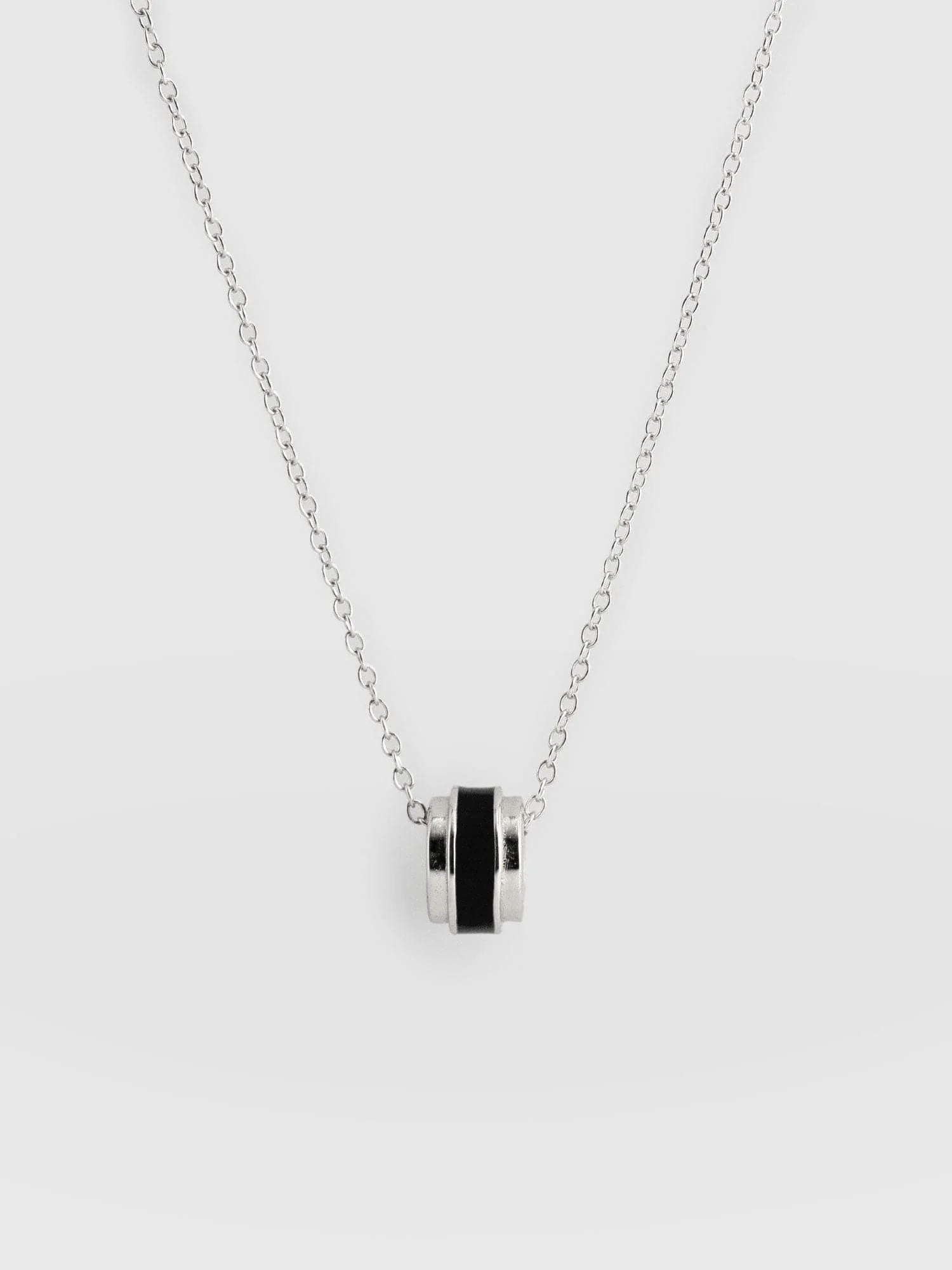 The Enamel Striped Charm Necklace in silver and black offers a refined blend of classic elegance and contemporary style. Featuring a sleek bar pendant accented with black enamel stripes, this piece enhances any outfit with subtle sophistication. Crafted by skilled artisans, its meticulous handmade construction ensures lasting quality and precision. Ideal for both professional and casual settings, this necklace also makes a thoughtful gift, bringing a distinctive touch to your jewellery collection.