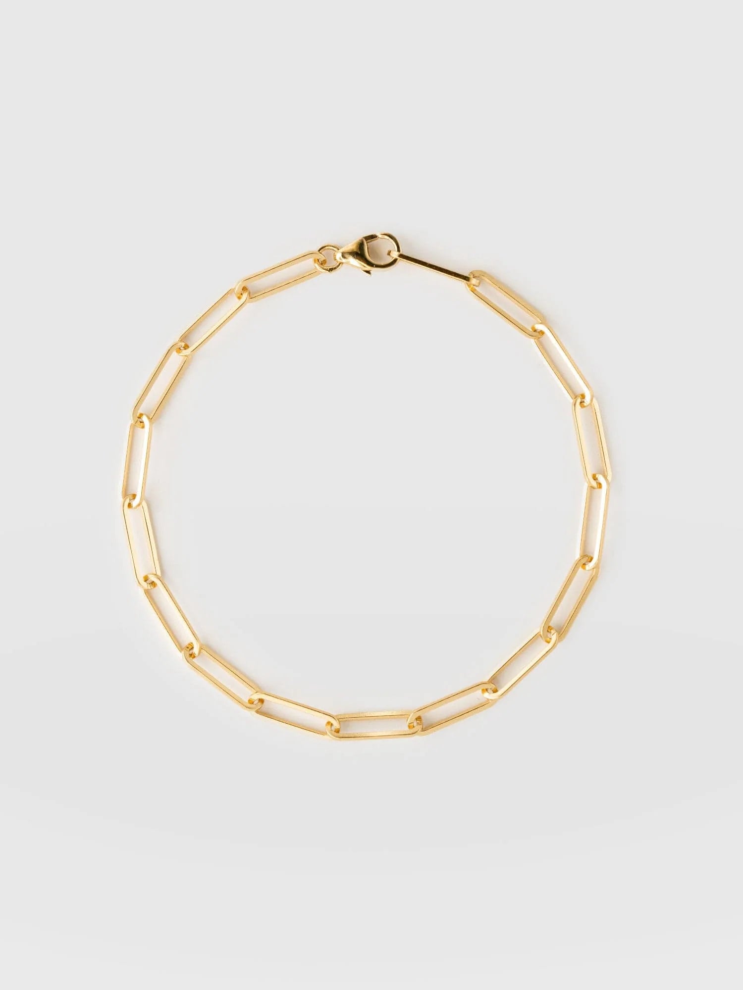 Elevate your jewellery collection with the Saint + Sofia Link Chain Bracelet in gold. Expertly handcrafted with precision, this versatile piece brings subtle sophistication to any ensemble—whether for professional settings, casual weekends, or gifting. Its timeless design shines beautifully worn alone or layered with complementary accessories. For a harmonious and polished appearance, pair it with the matching necklace and earrings from the Saint + Sofia collection.